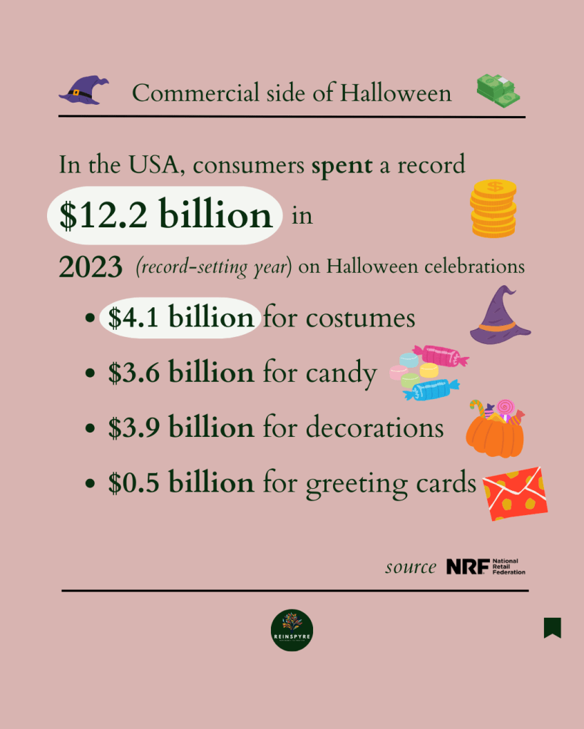 In the United States of America, consumers spent a record $12.2 billion in 2023 (record-setting year) on Halloween celebrations